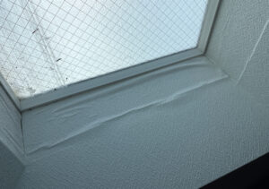トップライト廻りクロスの歪み サッシの結露水に因るものと思われる